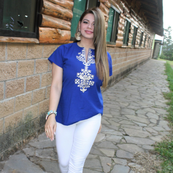 Blusa estilo frescura floral. Esta bordada en manta de la mejor calidad 100% algodón.