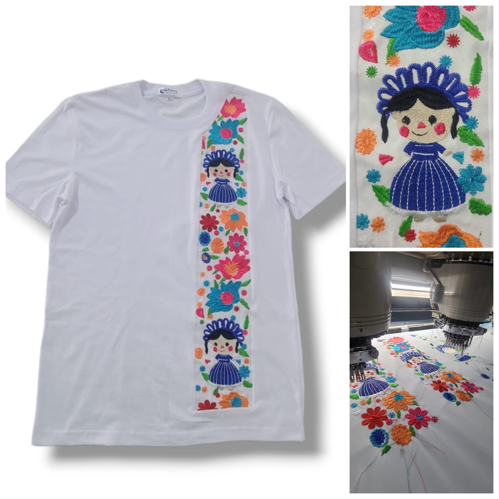 Camiseta Bordada Muñeca Salvadoreña y Flores