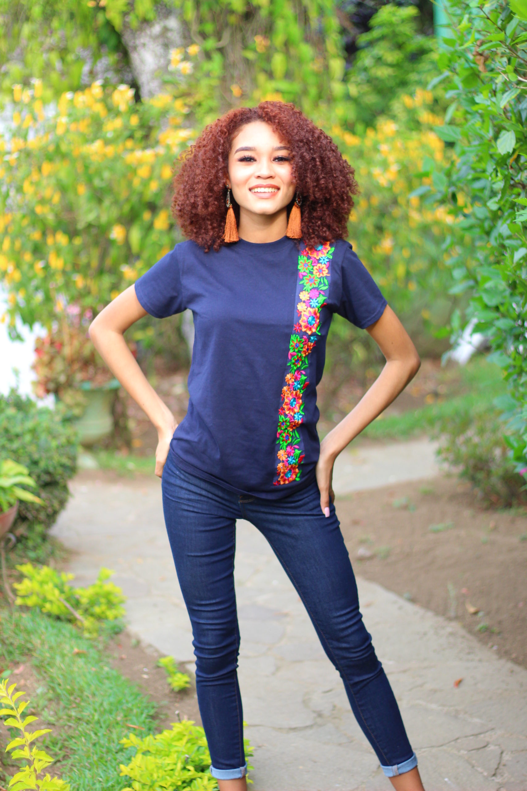 Este estilo esta bordado en tela de camiseta de la mejor calidad, 100% algodón. Nuestros estilos son elaborados en El Salvador.